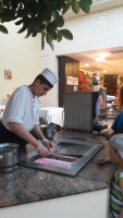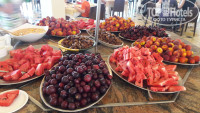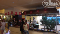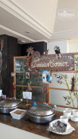 Пошли на первый ужин и неприятно удивились очередям за едой. Выбор еды для отеля 4* вроде и нормальный, но очереди! Чтобы положить себе еды из крайнего "контейнера", нужно отстоять очередь, ибо тут так принято. Нас было 2 взрослых и 2 ребенка, сначала стоишь за едой для детей, потом для себя, очень неудобно. Ну и по утрам за блинчиками, омлетом, пончиками та же история. Иногда не хватало столов и приходилось ждать, ибо за стол для шестерых нас, четырёх, не пускали официанты. На улице сидели пару раз, но мухи и курящие прямо за столами гости отеля загнали нас обратно. По питанию в основном ресторане особых претензий нет. Повара стараются, официанты тоже. Убирают тарелки прямо из-под носа, даже если там еще осталась еда, которую ты хочешь доесть. Тут нужно быстро реагировать и не расслабляться! Есть уголок тунисской кухни, где всегда острые блюда на любителя. А так: индейка, говядина, курица, баранина, рыба, несколько раз были крабы и пару раз рис с мидиями и креветками. Но абсолютно несъедобный сыр! Причем его было всего два вида, желтый и белый, но на вкус они одинаково отвратительные. Пластилин какой-то, даже слов нет для описания этого "вкуса". Про колбасу тоже ничего хорошего сказать не могу, по утрам только два вида более-менее съедобных было, самая бледная и порозовее, похожие на ветчину. Так что любителям позавтракать бутербродами придется потерпеть. Детям молочная рисовая каша, у них она называется рисовый пудинг, не очень сладкая и разбавленная водой. Йогурт вкусный только клубничный. Чай из чана очень крепкий, иногда нечем разбавить, поскольку горячая вода только по утрам. А из чана, где написано "зеленый чай", все время тёк только черный. Зеленый можно было попить только утром, заварив пакетик.