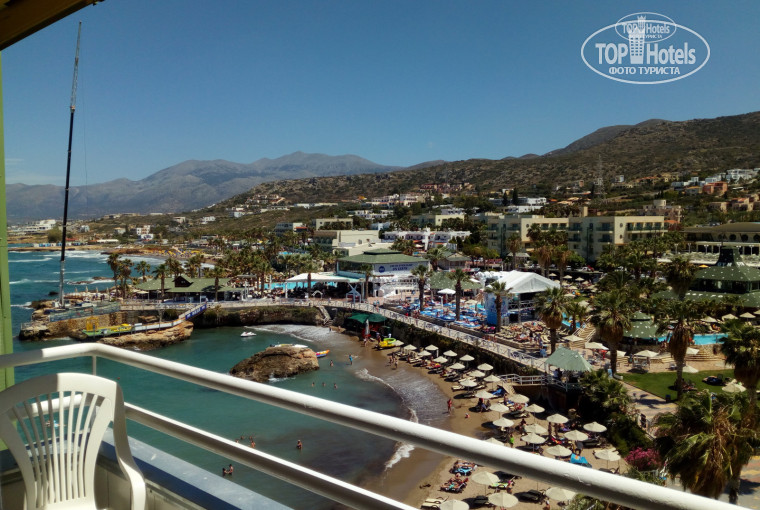 Про отель. Корпус Зевс, пятый этаж, вид на стар бич. Номер хороший, стандарт с двухъярусной кроватью для детей. Вид из номера красивый— море, горы, стар бич. Но с 14.00 и до 23.00— долбит музыка. Если открыт балкон, спать невозможно. Хоть я и люблю дискотеки, поначалу прикольно, но все 11 дней.... А друзьям дали номера в Олимпии— тихий малоэтажный корпус у пресного бассейна. Отличное место.