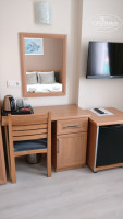 Заселение - Приехали поздно ночью. Около 2:00. Дали семейный номер для ночевки на 2х). С утра разместили в двухместном номере. Предоставили несколько номеров на выбор, очень приятно). Выбрали поближе к терраске, с диванчиками и столиками (там можно курить). Выходить туда можно в любое время). Можно просто сидеть. Пить чай или чего покрепче;) Стаканы в номере есть (стеклянные), как и чашки с чайником, и с чайным набором (кофе, чай в пакетиках, сахар). Чайник правда пришлось отмывать. До нас там явно не воду кипятили( Чистота в номерах идеальная! Даже мне, дотошной до всего=), было удивительно. В ванной все блестит, душевая без разводов и грязи. Полотенца меняют каждый день. Фен есть, все исправно работает. Холодильник стандартный, хорошо охлаждает, как и кондиционер, который висит правда над самой кроватью, так что с ним спать невозможно. Для меня по крайней мере). Полотенца и купальники сушили в ванной, там вполне достаточно места. За ночь все высыхает. Пляжные полотенца нам кстати так и не дали. Но за наличием своих, просить не стали). Сервис и обслуживание на высоком уровне, любые просьба сразу получают отклик. По русски в отеле не говорят, даже на ресепшене. В кафе при отеле Tonoz"s Garden есть меню на русском;). Каналов на ТВ русских нет!! Кому то может быть критично. Есть повод выучить turkish=).