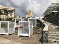 Приехали в отель вечером.Правда когда нас привезли к отелю на автобусе(а автобус к самому отелю не подьезжает из-за стройки) и высадили, девушка из турагентства показала в сторону нашего отеля и сказала "Дойдёте сами - вам туда" и уехала. Разместили быстро.На ресепшен с нас взяли туристический сбор про который конечно написано в ваучере.За двоих 28 евро.Залог за полотенца 10 евро за одно.