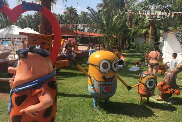 Есть холодильник с мороженым и соком -девочки выдают отдельно. На открытой зоне играют в игры.Мы маленькие особо не учавствовали,больше проводили время складывая пазлы и смотрели мультики (на русском). Территория отеля красивая, чистая, зелёная, ухоженая. Бассейны чистые,хлором не пахнут. В общем отдых понравился, рекомендую этот отель, особенно для отдыха с детьми.