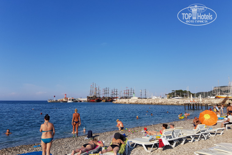 Отдыхали в 2017 году, в июне, очень классный персонал, обслуживание, анимация здоровская. С детьми там делать нечего, ну и людям в возрасте, потому что на ресепшене слышала много просьб о переселении в другой номер, так как музыка играла с утра и до поздней ночи. Единственный минус - тара для напитков объема 0,2. Пляж - галька, но есть специальные спуски в воду. Расположение отличное, рядом много точек продажи фруктов, рынок, торговые ряды. В общем, впечатление осталось отличное!
