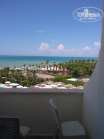 Номер Sea View в основном здании хороший, в бежевых тонах, с ремонтом: зеркальный шкаф-купе с вешалками и полками (их много), телевизор встроен в зеркало, в ванной дверь, створки мойдодыра и рама зеркала неаккуратно перекрашены из черного в белый цвет, новая сантехника, душ с пластиковой дверцей, не протекал, холодильник и фен новые, но слабо работающие. Кондиционер центральный, старый, регулировался, иногда был гул, охлаждал хорошо. Балкон большой, сушка в глубине - одежда не улетала, матрасы все были хорошими, белые вафельные покрывала, пледы – старенькие, пододеяльников нет, полотенца хорошие, белоснежные, постельное белье нормально, но один раз застелили с небольшим пятном. Сейф электронный, прикручен к стене, в шкафу. Вид шикарный на море, несколько км прибрежной полосы видно, поселили в стандарт. 2 карточки от номера, они же для электричества. Жили на 3 этаже (у них это 1 этаж).
