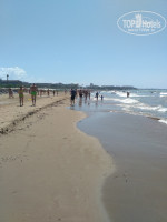 Купались только на соседнем пляже Дефне Гарден. У Цезаря по центру камни и очень острые, решили не рисковать, по бокам толпы людей плавают. Видела пораненных людей, у некоторых порезы очень сильные. Вход пологий, песок без примесей, долго мелко, глубина за 2 метра до буйков. Бывает рип, не паникуйте и плывите параллельно берегу(2 раза попала). Всегда были волны, прозрачность на вытянутую руку, никакой живности не наблюдала, вода +27. Понравились места на газоне (их надо утром занимать). Пляж большой 13 рядов, места всегда есть. Песок на пляже грязный, горшков для мусора много. Есть пляжный волейбол.