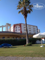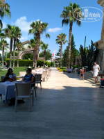 Больше всего мне не понравилось именно оно, а точнее его организация. Голодными не будете. Вроде бы много на первый взгляд всего, но огромные очереди. Раздача блюд организована плохо. Каши (рисовая, овсяная) хорошо приготовлены, есть яйца всмятку и вкрутую, йогурты, омлет порошковый - это без очередей. Грейфруты и апельсины ломтиками, есть овощи, сыры(брынза и моцарелла понравились). Тостер свободно, масла нет - только маргарин, мюсли, шоколадные шарики, мед, шоколадная паста, варенья – много, вкусное из цукатов. За оладьями, яичницей (с 8 утра готовят) и к ростеру надо стоять на солнцепеке. 1 раз взяла яичницу без очереди за 10 мин до окончания завтрака. Мясные, рыбные блюда часто в конце уже не пополняются. В начале приемов - муравейник, не ходили. Все котлеты, колбаски на гриле и колбаса соевые. Рыба очень простая, белое филе в соусе, подписана форелью, есть тушки белой рыбы на гриле. На ужин была уже настоящая форель, тунец был пару раз, но в начале ужина надо идти и стоять, мы не стояли. Один раз только взяла без очереди, последней. Тушки индеек и куриц пересушены, я и дети такое мясо есть не можем. Голени куриные хорошие. Нашла свинину в тушенном мясе с овощами. Креветки и кальмары были в салатах, понравился маринованный запеченный перец. Соленья закисшие, не понравились. Соусов много, мне понравился чили и гранатовый. Картошка фри, спагетти, макароны, пюре - очередь. Рис и пирожки с печенью понравились. Много хлебобулочных изделий, овощей, зелени, сладкий стол. Фруктов тоже хватает, арбузы нормальные, яблоки, груши, персики и нектарины (часто перезревшие) сливы хорошие, абрикосы (часто зеленые), черешня хорошая(на ужин). Дынь и клубники нет. Айран в стаканчиках в обед и в пляжном баре. Мороженое только на ужин выдают в упаковках (стаканчики или рожки), всего два (реже 4) человека, естественно очередь. В пятницу большой торт мороженое, порции кладут огромные. Лепешки, пончики невкусные, бисквиты и печенье (с16-17 на пляже) хорошие.