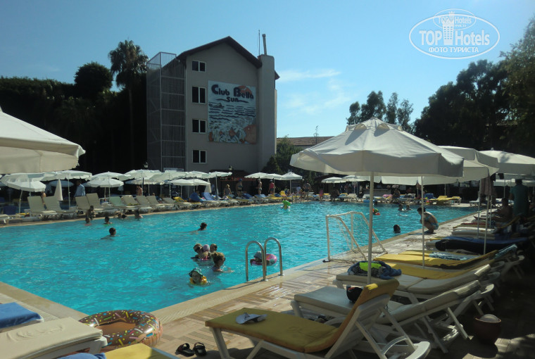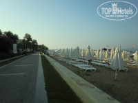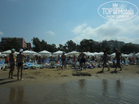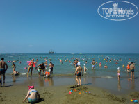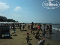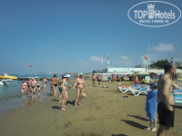 До собственного пляжа идти минут 6 неспешным шагом, через тенистую дорожку. Лежаки стоят очень плотно друг к другу, занимать их нужно уже в 6 утра что считаю большим минусом. Частенько люди занимают их впрок хотя сами едут при этом на экскурсии - типично наша совковая привычка. Можно конечно пойти на пляж Луны - там есть свободные лежаки, но море там очень опасное для купания по причине больших кораллов с неприятными выступами, о которые я в первый день по незнанке сильно ушиб ногу. Поэтому там мало кто купается - лучше идти это делать на пляже Armas Bella Sun - кораллов там гораздо меньше, заход плавный песчаный - для детей самое то. Наличие кораллов в Турции меня весьма удивило, но они и рядом не стояли с Египетскими по красоте - просто большие серые камни с неприятными выступами, по этой причине заход на глубину напоминает хождение по минному полю, люди не плавают а тупо стоят и барахтаются на одном месте как бегемоты ). Но зато можно поплавать в маске с трубкой - посмотреть рыбёшек тусующихся вокруг них - моему 5-летнему ребёнку это очень понравилось. Если аккуратно проплыть через риф по-ближе к пришвартованному пиратскому кораблю то можно встретить большую черепаху частенько там обитающую. На лежаке можно смело оставлять вещи - никто их не ворует. Из минусов отмечу отсутствие горячей воды в душе на пляже - отмыться от соли в нём (особенно для малых детей) по этой причине весьма проблематично - только заскочить и взбрызнуться по-быстренькому