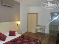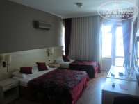 В 14.00 заселили без проблем. Вместо заказанного в туре стандартного номера на троих человек + раскладушкой для ребёнка, дали большой семейный с двумя комнатами, двумя балконами и двумя санузлами без всяких денег (видимо того что заказывали в наличии не оказалось) при этом русскоговорящая приветливая девушка с азиатской внешностью намекнула что мол не мешало бы за такое и отблагодарить. С дуру отдал 20 долларов благодарности шустрому турку с решепшена который нас заселял в этот номер и говорил что мол надо дать денег именно ему за такой шикарный номер - просто я думал что они с ней работают в тандеме а оказалось что нет. Вобщем посылайте его подальше в таких случаях и идите благодарите именно эту девушку с Казахстана. В номере плазменный телевизор с 50 каналами из которых были все основные русские : Первый канал, РТР, РТР24, СТС, НТВ. В номере постоянно летало 2-3 комарика (проникают в номер через вентиляцию туалета) но особо не досаждали поэтому даже ни разу не включил взятый с собой фумигатор. Вечерами из соседних отелей до 11.30 долбит громкая музыка анимации так что стеклопакеты не спасают - заснуть не всегда получалось если не очень сильно устал. Сейф в номере платный (2 евро в сутки) но им не пользовались а запирали паспорта и деньги в закрывающемся на замочек чемодане - никто не покусился. Wi-Fi тоже платный что считаю огромным минусом.