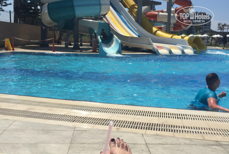 Территория компактная, большой бассейн, на котором аниматоры проводят конкурсы, устраивают аэробику, для детей отдельный бассейн, также крытый в спа, классные горки. Вечером для молодёжи дискотеки, на пляже пенные вечеринки.