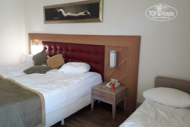 Итак. Брали номер с видом на море. Насколько я понимаю, что номеров с прямым видом раз, два и закончились….поэтому нам предоставили номер с боковым видом, но тоже неплохо. Номер как многие пишут не новый, но чистенький и все работает. В первые дни нашего заезда было всего канала три на русском, но потом была сделана перезагрузка и появились дополнительные, даже канал Карусель, что актуально для родителей с детками. Мини-бар пополнялся, номер убирался…в общем нормально.