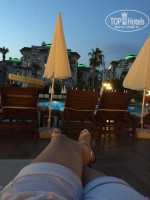 Здравствуйте, начну я свой отзыв с огромного СПАСИБО!! Ну и конечно по порядку!! Отдыхали с супругом в конце июня. Прилёт у нас был ранний, в 4 утра. Дорога от аэропорта до отеля с учетом заезда в другие отели заняла 2 часа ( автобус отличный, комфортный), в предвкушении отдыха настроение бодрое!! Конечно въезжая в Конаклы, впечатляешься красотой отелей и дизайн конечно на УРА! Кто на что горазд! И подъезжая к своему отелю не знаешь чего ещё ждать! При первом же взгляде отель привлекает своим выдержанным стилем (белое с голубым), без пафоса, но со вкусом! В итоге очень уютно!! На ресепшн нас встретила милая отлично русско-говорящая девушка администратор Евгения и с первых шагов в отель мы стали его Гостями!! Так как заселение обычно происходит в 14:00, то нам любезно предложили оставить в комнате хранения вещи и начать своё знакомство с отелем его территорией, ну и конечно Море о Море!! Проделав манипуляции с чемоданами быстро переодевшись в купальники, мы с радостью пошли на прогулку. ПЕРВОЕ, что бросается в глаза это разнообразие растительности! Садовнику респект! Все невероятно красиво цветёт ухоженно и аромат от цветов по всей территории! Фоткались возле каждой травинки! Чего только нет!! Шикарные фукусовые деревья! Инжирные, лаймовые, виноградные! Много есть того, что мы ( как любители садоводы) таких растений и не видели!! Вообщем территория оформлена в лучших райских традициях!! Следующее и не мало важное, что привлекло внимание так это чистота, персонал отвечающий за чистоту ?! Вся территория тщательно убирается причём не понятно в какое время! Всегда до блеска!! Ну так вот, продолжая знакомство с территорией подошли мы к главному ресторану его территория охватывает наверно от общей площади территории 30%, а это очень даже не мало! Да что говорить !!огромнейший!!! Со столиками на любой вкус и в закрытом помещении с кондиционером и на открытой территории, можно у бассейна, а можно и под свисающимся фукусовым деревом!! Красиво нет слов! И очень удобно! ПИТАНИЕ!! Про себя подумала, если завтраки в таком изобилие то, что ждать от последующих трапез!! Множество видов сыров, овощей на любой вкус (баклажаны, брокколи, капуста всех видов и я не имею ввиду только белокочанную?, хочешь свежие, хочешь тушенные, хочешь фаршированные, на гриле, марковь, огурцы, помидоры и разнообразный маринованный лук я даже не учитываю, а оливки и маслины в каком виде только не подают!!) мясные, рыбные продукты, колбасы, булочки по 19 видов, лепешки с пылу с жару, а такие продукты, которые мы привыкли видеть у себя на столах я даже не перечисляю! Все есть и все очень вкусно! По домашнему!! Да и в догонку ...из фруктов есть все! Черешня ящиками, арбузы ( отдельное спасибо автору за чудесные изображения на арбузах, приятно было каждый день видеть красиво и вырезанные на арбузах картины или узоры), яблоки и груши, бананы из собственных плантаций сладкие ароматные, виноград сливы абрикосы персики, дыни....за Питание в этом отеле, я бы поставила 5+, кстати обратила внимание на питание для деток, можно без проблем детвору кормить и выбор даже для малюток есть, можно даже супик или овощи варенные блендером измельчить, все это предложено на столах!! Волу в Турции не пьют из под крана, по этому всегда на столах да и в номерах да и во всех барах вода либо в бутылочках, либо в кулерах. Кофе чай прохладит