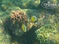 Пляж далековато, но прогуляться после плотных приёмов пищи полезно :) Для лентяев каждые 15-30 минут ходит автобус по маршруту "отель-пляж" и назад. Прибрежная "мелкая" зона очень большая, около километра, поэтому лучше заходить в воду с понтона. Центральный, самый длинный (900 м.), в конце которого метров 30 средней глубины и потом обрыв с кораллами и рыбками. Левый понтон вдвое короче, но и выходит он на небольшую глубины с песчанным дном и небольшую "ванну" с парой кораллов и десятком рыб. Смотреть там нечего. Есть ещё правый понтон, самый удобный, выводящий сразу на глубину, но на него могут не пустить, т.к. он на территории другого отеля. Нужно закрывать браслет полотенцем, чтоб Вас не отфильтровали :)