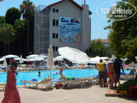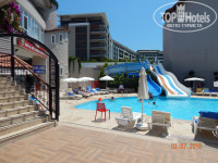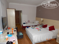 Это не отдых!!! Зачем там четыре корпуса????? В полную силу персонал справлялся бы только с двумя! Уж простите занимался подсчётами, в то время как должен был бездумно отдыхать. Итак, статистика. На территории отеля 3 бассейна: большой - 86 лежаков, средний совместно с мелким для детей - 68 лежаков и третий за вторым корпусом примерно 6*6 - 37 лежаков. На территории это всё! Перемещаемся на пляж и видим там 290 лежаков. ВСЁ!!! Да я их, с*ка, посчитал, потому что они все были заняты. По корпусам: 1ый - номера с 1101 - 1119 и, вроде, 2101 - 2119; 2ой - номера 2101 - 2424 (т.е. 4 этажа по 24 номера на каждом); 3ий - 3101 - 3426 (соответственно, по 26 номеров на этаже) и 4ый - 4101 - 4527 (тут есть пятый, где размещались "карлсоны"). Итого: 1ый - 38 номеров, 2ой - 96, 3ий - 104 и 4ый - пусть как 3ий - 104(точно не знаю) плюс 27 под крышей. Общее количество номеров =369 !!!!! Берём среднее размещение 2,5 и получаем 922 отдыхающих. 922 человека на 481 лежак. КАК ТАК ТО!!! Про уборку в номерах не буду, без ядрёного русского мата не опишешь. За всё время пол протёрли 2 раза. Постельное на 5ый день пребывания просто содрал с кровати и положил этот ком на матрац, и только после этого поменяли. Полотенца, чтобы поменяли бросал на пол у входа, по другому их не меняли. Но все сразу не бросайте, а то забирать то забирали, а замену не оставляли, бегай потом ищи уборщицу. И то по русски типа не "белмез". Выучил пару фраз типа: Ийи гунден. Веребелир мессениз ичи бююк хавлу, 1 (на пальцах) кючюк хавлу. И очень долго пытался объяснить, что мне нужен комплект постельного на дополнительное спальное место (кресло-трансформер, которое превращалось в полноценное спальное место). Вонь канализации не только возле корпусов, но и в номере из уборной. Не дай бог ты не закроешь дверь уборной, весь номер провоняется. И да, у входа в 3ий корпус растут два больших ... внимание! ... ТОПОЛЯ! Что за идиот их там посадил? Пух ВЕЗДЕ! Ну, и отдельного внимания требуют КОМАРЫ. Я раз десять за свою жизнь был на море и НИГДЕ комаров не видел, но тут их никакой фумитокс и др. даже не брал. Перемещаемся в столовку и здесь начинается квест по поиску более - менее чистой ... ТАРЕЛКИ !!! Их в достатке, но чистых нет! ВООБЩЕ НЕТ!!! По моему, их просто из душевой лейки обливали и в зал выносили. Про вилки написано много, но добавлю. В предпоследний день пребывания на ужине я даже в очереди за ними стоял. В очереди ... за вилками!!! А когда подошла моя очередь я увидел как этот ИРОД протирает их салфеткой, такой же как и лежали на всех столах. Вы бы видели эти салфетки!!! Я их сдвигал на край стола, хотя было желание скинуть на пол и ногой протереть возле своего стола. После освобождения стола подходили уборщики, стряхивали крошки и ... переворачивали её и стелили другой стороной для следующего желающего присесть за стол. Вид у них был такой, будто такую операцию проделывали десятки раз. О еде: травы и непонятных соусов в достатке, мясо! ... они вообще знают что такое МЯСО (курятина не в счёт)?! Полуфабрикаты, да ещё и пережаренные со страшной силой на этой УЖАСНОЙ поверхности, которую мыли ... подождите! ... похоже её даже душевой лейкой ни разу не обмывали! Ну, а остатки заливались каким-нибудь соусом и подавались на следующий день! Самое популярное блюдо среди отдыхающих - картофель в разных видах и за ним надо было постоять в очереди! Да и самое главное, что меня бесило, так это то что ни у одного блюда не было подписано ни 