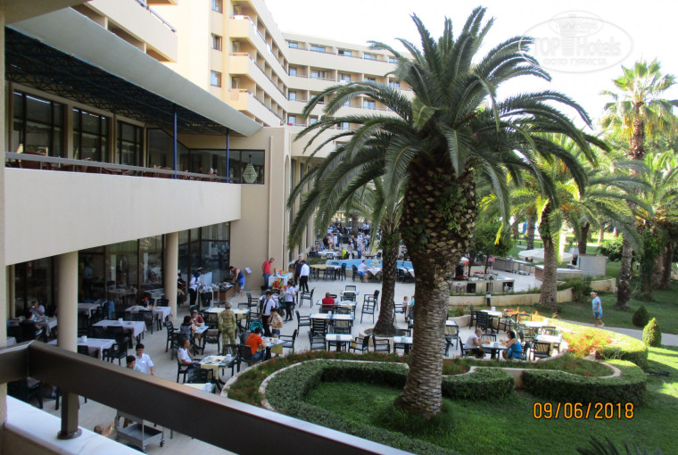 Путевку в этот отель покупали у туроператора санмар в Перми, летели турецкой авиакомпанией, кормили в самолете очень скромно, бутерброд с чаем или кофе, и воду давали, вылет без задержек, прилетели утром в 7 утра, до отеля везли около 2 часов на микроавтобусе, в отеле нам сразу дали комнату с видом на бассейн, повезло что сразу без каких либо доплат, т.к. время еще не было и 10 утра, номер стандартный без изысков, 1 кровать 2-х спальная и 1 кровать односпальная, убирались с номере каждый день горничные. Питание в отеле очень даже неплохое, каждый день рыба, мясо на улице жарили ,шаурма,пиццы разные, лепешки, гарниры разные, овощи разнообразные, фруктов много было, всяких сладостей, ну бывали очереди то за блинчиками и омлетом по утрам, то за рыбой и грилем по вечерам , и еще чуть попозже придешь на ужин все столы могут быть заняты, но так как никуда не торопишься, мы же на отдыхе, это не принципиально,в барах коктейли, пиво, вино, фанта, кола и другие крепкие напитки всего полно, территория красивая, ухоженная, в бассейне один раз искупались, на горках 3 раза прокатились т.к. не очень интересуют водные горки. Пляж нормальный, иногда с утра попозже придешь, лежаков не хватает, но всегда находили, вход в море справа не очень, камней много, но слева лучше- песок и немного совсем гальки, так что проблем не испытывали, море теплое , отличное, иногда было не очень чистое, но как то не испортило впечатление. Да еще хамам и сауна без массажа бесплатно, ходили под вечер каждый день. Да еще анимация вечерняя скромная для взрослых, для детей наверное подходит. Вообщем отель даже очень неплохой, советую посетить, Конечно цена даже по раннему бронированию из Перми на 12 дн.на 1 чел. 52т.р.-дороговато.Но я бы еще сюда приехала.
