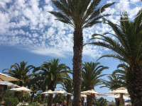 Отдыхали в середине июня. Погода порадовала, с моря постоянно дул ветер, поэтому было совсем не жарко, Только небольшая волна на море, но купаться она не мешала.