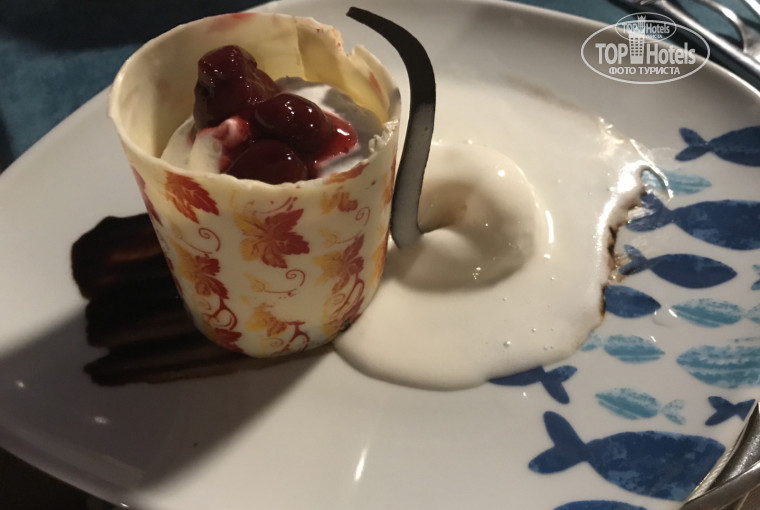 На территории отеля есть 3 бара, снэк-бар, работал он с 10 утра и до 18.00, там можно было перекусить (макароны, пицца, фри , нагетсы, овощи, фрукты, мороженое). Около снэк- бара женщина пекла гёзлеме с разными начинками, очень вкусно. Лобби бар - работает с 10.00 до 24.00 часов, там варят очень вкусный кофе, а также можно на выбор взять любые другие напитки. Пул бар работает с 10 утра и до 3 часов ночи! Спиртные напитки, как и везде в Турции, но мы в основном пили пиво, нас все устраивало. Персонал везде очень приветливый и улыбчивый! Снэк-бар в 19.00 превращается в ресторан а-ля карт, меню на выбор ( мясное или рыбное, если вы с детками, то есть и детское меню). Ресторан лучше заказывать в первые дни вашего приезда, так как желающих много))), ресторан резервирует сотрудник отеля Карина, очень милая девушка, все рассказала и посоветовала, подобрала для нас наиболее удобный день для посещения ресторана. Мы свой выбор остановили на рыбном меню, нам все понравилось.
