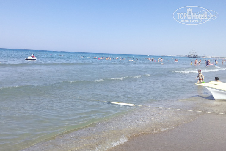 Единственное от чего мы были в шоке - это пляж. Точнее мусор на нем. очень много мусора - окурки, стаканчики, банки и прочее. И ведь там есть работник, который сидит и следит, чтоб чужие не заходили, отключает воду в душе, неужели в его обязанности не входит следить за порядком, лежаки никогда не составят ровно, матрасы валяются. Своего выхода к морю с пляжа нет - там занято катерами, выходили с соседнего пляжа, но на солнце на море видно бензиновую пленку.