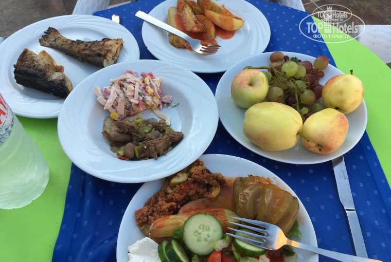 ЕДА - раз на раз не приходилось, бывало, что давали горелые (чёрные) оладьи. На завтрак выбор не густой, яйца в любом виде, оладьи, один раз видела картошку-фри на завтрак. Кто-то её ест по утрам? Обед на пляже: гамбургеры,картошка из пакетиков, нагетсы из сои, овощи. В отеле обед был вкуснее, есть хотя бы арбуз. На ужине бешеные туристы стоят в километровой очереди за грилем, спрашивается нафига, еды хватало всем. Столы грязные, приборы брали с других столов, либо ждали минут 10, пока принесут чистые (приходилось выбирать почище вилку/ложку/тарелку).
