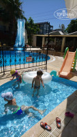 По приезду покушали и пошли смотреть территорию. Территория отеля небольшая, но очень уютная. Есть большой бассейн для взрослых с горкой и маленький для детей. Чистят бассейн через день. Есть также настольный тенис, беседка.