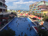 Отдыхали с подругой и ребёнком в отеле в начале июля 2018 года, начитались отзывов о нем, были немного насторожены, но когда приехали-начиная с заселения-у нас все пошло отлично. Нас интересовало море и анимация-и тут все было супер. Не смотря на то, что до моря нужно идти или ехать на автобусе, который ходит от отеля к пляжу, нам это даже нравилось, что можно прогуляться, и конечно же мы знали что едим в 4 звездочный отель(не первая линия). Начну с комнат: номер не большой, но уютный, в номере чисто, убирали через день, мыли пол и вытирали пыль, ну и меняли полотенца. В номере мы только ночевали и мылись, для других целей номер и не нужен вовсе на отдыхе)), многие жаловались, что номер маленький)-вы что там бегать собрались?))