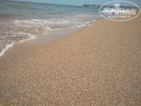 Очень широкий, очень пологий заход, песок и очень мелкие ракушечные частички. С детьми идеально.
