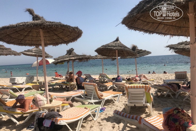 ПЛЯЖ - ради него и ехали, важно было лишь море. Но по факту пляж малюсенький, половину территории отдали платному бару для местных, откуда после обеда начиналась громкая музыка; за лежаки постоянная битва, сотрудник пляжа за доп. плату занимает с раннего утра лежаки в первом ряду, остальным если придти в 7 утра можно лечь где то в середине, в 9 утра нет мест нигде под зонтом, и при этом как в плацкарте нога - лицо (на фото), за солнцем лежак не очень то покрутишь . Полотенца пляжные меняют с 9/10 до 16, в итоге либо уходить с пляжа рано, либо вечно лежать на мокром. Особенно обидно видеть слева пляж другого отеля, пустынный и просторный, а мы ютимся как тараканы.
