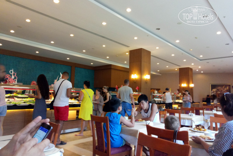 Читая отзывы про питание, у меня всегда возникает вопрос, почему едя в страну с определенной сложившейся культурой питания, вы ждете привычный для вашей конкретной семьи ассортимент блюд.Ну все ж зависит от вкуса и от того к какому питанию и напиткам Вы привыкли. Утром там были, яичнницы с наполнителями, глазуньи, оладьи, омлет, сыры-колбасы, сосиски, овощи, булочки, фрукты, молочные изделия типа йогуртов, варенье-мед,горячие бутерброды и тосты…ну разве мало? Про соки..да они ненатуральные, невкусные…мало где дают бесплатно свежевыжатые…этото пятизвездный отель один из дешевых…помнится в амара дольчевита были соки..нол там на эти же 14 ночей стоимость в 3 раза дороже, и то люди плюются…ребенок захотел сок апельсина – берешь 4 штуки и выжимаешь в стакан…они ооооч сочные. Овощей много, ели в основном свежие, салаты с майонезом и кетчупом мы не любим. Я упивалась шпинатом…оч люблю. Ктото говорил про отстуствие детского меню..паровая рыба и овощи отварные или тушеные были всегда…картошку фри мой ребенок не ест, куриное или индюшачье мяско мягкое всегда пожалуйста, морковка…капусты всякие..Арбузами уедались, сладкие и вкусные…ну конечно видя розового цвета со светлымы костями не брали…ждали след разрезанного. Вкусные персики и нектарины, виноград, сливы большие,в посл день дали клубнику…дикий народ набирал чуть не тазами…а потом удивлялись вирусам…да от фруктов тупо слабит. Мороженое вкусное, ну очередь была макс человек 10, но это мин 5 подождать..всегда продукты подносили…А вот сладости мне не оч понравились, много аналогов суфле, чтото на манке, я такое не очень, для меня вкусным показался большой торт и чтото похожее на творожную запеканку с курагой и десерт с виноградом залитым желе на тонком бисквите.