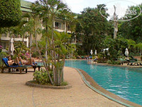 Отель сам старенький,хотя для 3 звёзд вполне нормально, территория очень зелёная и тропическая. Из окна номера открывается просто вид джунглей! Птицы кричат , как в настоящих джунглях. Хотя сам отель находиться в 5 минут ходьбы от центральной развязки (дельфинчики). Жили в бунгало, очень скромно, ни какой тайской тематики в нём не было, грязновато, мебель и всё старое. Был сейф , рабочий, но совсем не закреплён, при желании можно унести. В номерах постоянно ящерицы. Питание вполне нормальное, но каждый день один и тот же ассортимент, но голодным точно не остаться! Всё очень съедобно! Лежаки у бассейна всегда были доступны, полотенца периодически для них. Уборка в номере символически, чисто смена белья, каждый день, вода питьевая, гель, шампунь.