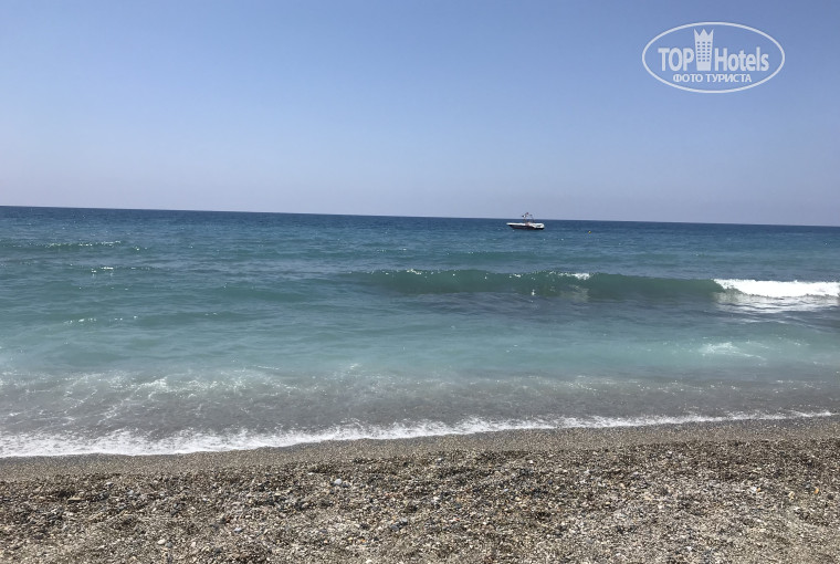 Море и пляж: Пляж песчано-галечный, галька мелкая, это абсолютно не мешает, даже наоборот хороший массаж для ног. Море тёплое и чистое. Лежаков много, всем хватает. На территории пляжа есть бар, напитки наливают с 10 утра, с 12 дают еду - турецкие лепешки, фрукты, овощи, фри, гамбургеры, наггетсы.