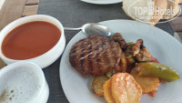 Отдыхали с мужем в июле.Номер был с видом на горы на 4-м этаже с балконом.Номер достаточно чистый и комфортный,все необходимое в номере имелось.Уборка каждый день.Если едете с детками и ложитесь рано спать,номер с видом на бассейн лучше не брать,так как дискотека и анимации заканчиваются в половине одиннадцатого,но молодежь ещё продолжает сидеть.Еды было достаточно,мясо,овощи,фрукты,сладкое.Я за неделю все так и не успела попробовать.Персонал в ресторане очень отзывчивый.Видно,что ребята стараются и всячески пытаются угодить.В баре у бассейна есть кальян,за 25 лир,не рекомендую.Зря потратите деньги.Лучше покурить хороший кальян на набережной.В гостиннице находится каждый день и сам ее владелец,который так же общается с гостями,переживает чтобы все понравилось.В общем, впечатления остались приятные.