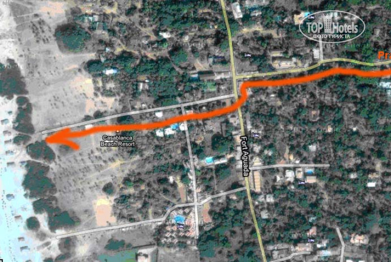 Чтобы добраться до пляжа, нужно выйти из центр входа, повернуть направо и идти прим. 200-300м вдоль дороги до Т-образного перекрестка (местное главное авеню – идет параллельно пляжу). Затем повернуть налево. Пройти метров 15-20 и повернуть направо. Далее дорога выведет прямиком на пляж. Еще раз для ориентировки, авеню идет параллельно пляжу, дорога от отеля до авеню – перпендикулярно.