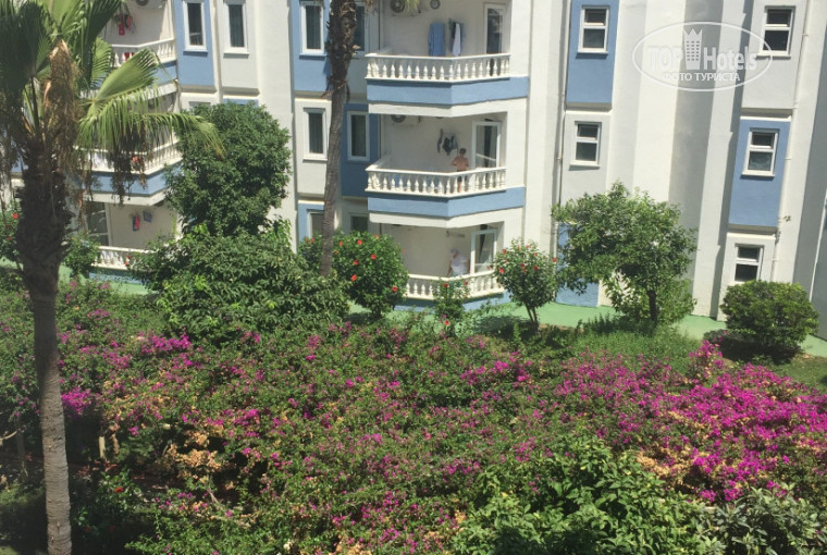 Номер нам дали в 5 корпусе отеля на 2 этаже. Выход у нас был на зеленую аллею. Вид был очень красивый, все зелено и в цветах. Нам номер дали family, самый стандартый, с 2-мя комнатами, имеется одна большая кровать, диван, телевизор, еще нам принесли кровать-раскладушку, она была очень удобной. Так как нас было 4 человека. Единственный минус номера, это уборка комнат, но после как мы сделали им замечание, с уборкой все было налажено.