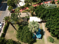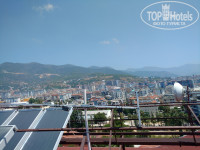 После очень утомительного перелета (вылет был задержан на 6 часов), добрались почти в полночь. Нас сразу же заселили, милая девушка на ресепшен порекомендовала сходить в столовую, поесть супу (кстати, суп очень вкусный там). Номер нам понравился, хотя, конечно, надо было бы попросить второй пульт от кондиционера и поменять батарейки в пульте ТВ, но мы особо не заморачивались. Одну розетку (кстати, довольно нужную в процессе проживания) нашли за кроватью только когда смотрели перед отъездом - не забыли ли чего, кровать отодвигаем - вот она, родная! В номере - только спали. Девочки в своей комнате - мальчики в своей. Мебель неплохая, сантехника не нульцевая, но "старой" я ее тоже назвать не могу. Все нормально, все работало хорошо и выглядело достойно. Большой балкон с видом на море и бар. Из окна комнаты - видны горы. Водные горки во дворе, работали с 10.00 до 12.00 и с 16.00, вроде. Катались мы все, бешеного аншлага на горках не было, они и не очень шустрые, но все равно, какого-то наблюдателя стоило поставить.