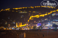 По поводу питания тоже никаких нареканий. Довольно однообразно, но не голодали))) На завтрак - большой выбор сыров, всяких "шариков" для детей. неплохие йогурты пара видов, очень вкусное варенье клубничное. Обеды/ужины - птица, один раз была неплохая рыба (как раз на мой день рождения). Овощей много: баклажаны, кабачки разных видов. Большой выбор фруктов, честно, столько видов не было нигде. Дети ели что-то на снэкбаре, вроде, им понравилось. Я там брала только дыню - она вкуснее ресторанной. Ресторан - на пляже, с чудным видом на главные достопримечательности Аланьи!