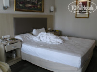 В целом оценивая отдых в Турции по главному моему критерию ЦЕНА - КАЧЕСТВО, ставлю твёрдую "НЕУДОВЛЕТВОРИТЕЛЬНО". Отдых вызвал неоднозначные впечатления прежде всего своей непродуманностью концепции отеля и дороговизной в переводе на рубли всего остального. Отель "заточен" скорее для местного контингента и для непритязательных европейцев. Отдыхают там, примерно, 30% турок, арабов и иранцев, 30% русскоговорящих (в основном из России и Казахстана) и 30% из Германии, Бельгии и Восточной Европы. Как ни странно большинство туристов отдыхает с детьми, в том числе совсем маленькими, хотя отель не совсем подходит для детского отдыха. Далее объясню почему. Итак, начну с территории отеля - территория большая, более 100 тысяч кв. метров, но как то всё на ней расположено не правильно - вся еда и напитки сосредоточены возле главного бассейна, на пляже ничего нет, соответственно тот кто отдыхает на пляже, вынужден ходить к бару и ресторану у бассейна. Туалетов ни у бассейна, ни на пляже нет, соответственно все ходят по малой нужде или в море, или в бассейн, что не способствует профилактике энтеровирусных инфекций. Глубина главного бассейна везде одинаковая 1,40 метра, так что для тех кто хочет поплавать и понырять этой глубины мало, а кто не умеет плавать и ростом менее 1,40 метров тоже не комфортно. Есть релакс-бассейн для 16+ (детей туда не пускают), глубина там тоже 1,40 метров и гидромассажные струи там работают не всегда и строго по времени. Для совсем маленьких деток есть отдельная зона отдыха с бассейном 0,35 метра, там с ними отдельно занимаются аниматоры. Так что, для детей от 5 до 10 лет, не умеющих плавать, остается только бассейн у аквагорок (там глубина 1,10 метра). Аквагорки - их четыре: скоростной спуск (желтая горка), строенная "радуга", спираль (синяя горка) и "кобра" (на неё не пускают детей младше 10 лет и ростом менее 1,20 метра). Горки работают тоже строго по времени с 10 до 12 часов и с 14 до 16 часов. Теперь об анимации - дневная анимация для взрослых и подростков представлена аквааэробикой, различными конкурсами и спортивными мероприятиями в бассейне, дартс, боча, фитнес-гимнастика под навесом на пляже (в основном женщины), пинг-понг (в основном дети), есть баскетбольная площадка, поле для гольфа, сетка для пляжного волейбола, но я не видел чтобы кто-то там играл. Вообще в отеле как-то "принято" использовать инфраструктуру не по назначению, например, на баскетбольной площадке вместо пляжа, как в других отелях, проводятся "пенные" вечеринки, а вечерние дискотеки (иногда до 2 часов ночи) проводятся в ресторане у бассейна, что я думаю не радует обитателей самых дорогих номеров с видом на море с учётом плохой акустической изоляции стеклянных перегородок, при этом специально выделенный для этих целей и далеко расположенный от корпусов диско-шатёр не используется (см. карту отеля, специально отредактировал её для этого). А знаете где можно поменять пляжные полотенца? На пляже? У бассейнов? Нет, в ХАММАМе! Теперь о развлечениях. Вечерняя анимация стандартная - повторяющиеся программы в амфитеатре и затем вечерняя дискотека. Детская анимация представлена в специально выделенной зоне, где совсем маленькие детишки тихо занимаются с аниматорами - рисуют, лепят, готовят пиццу и т.д., а по вечерам каждый день проходит детская мини-дискотека. Дети постарше совсем не интересно заним