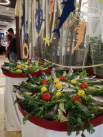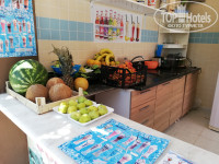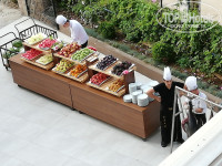 Еды было достаточно всегда, и это не может не радовать. Правда в жару (37 градусов), колбаса начинала неприятно пахнуть, так что если не хотите проглотить не свежую сосиску, будьте повнимательнее в выборе продуктов. Из мяса была индейка, баранина, говядина, был язык и конечно же курица. Практически весь набор, а ещё шаурма, гамбургеры, хот доги. Рыбу я ем редко, так что про неё мало что знаю, но она была. Были все известные гарниры. Фруктов тоже хватало – арбузы (не очень спелые), дыни, сливы, виноград, бананы, апельсины, персики, абрикосы. Конечно не стоит приходить к окончанию обеда (мы один раз пришли), там уже из фруктов только водичка от арбузов. Дети на завтрак брали йогурты, и в них постоянно были комки, через несколько дней йогурты мы брать перестали. Есть и сладости, и не только в ресторане, но и в кафе с 11.00 до 17.00, там же можно турецкого кофейку взять. Десерты выглядят аппетитно, но у всех очень похожий вкус.