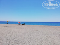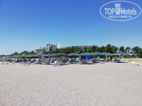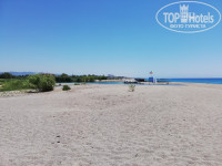 Пляж широкий и комфортный, на нём свободно располагаются две волейбольные площадки, и рядом пустует место для третей. Абсолютно достаточное количество лежаков, как будто сотрудники отеля знают, сколько приходит людей на пляж, а сколько остаются у бассейна. За всё время нашего отдыха, я не видел ни одного человека, кто бы не смог найти себе свободный лежак. Есть переодевалки и душевые, краны для ног и мытья тапочек, часы, контейнеры для мусора и грязной посуды (хотя, не все хотят ими пользоваться), и даже есть места для кладки яиц черепах. Вход в море – песок и галька, в зависимости от волны. Волны на этом пляже всегда. Пару дней такие, что плавали пакеты, тина, пузыри и цвет воды был коричневый. Наверно со дна подняло. Но катание на волнах, заставляет на это махнуть рукой, и ждать когда накатит повыше.