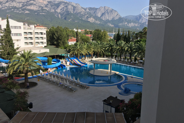Отдыхали с мужем с 20 по 29 июля. Начиталась отзывов и было страшно ехать. Но все не так страшно. А может просто повезло. А может просто кто зачем едет. Итак, приехали около 21 вечера. Отправили на ужин и заселили сразу после него в основной корпус ,3316 номер. Покупали sea view. Поэтому окна выходили на бассейн без горок, на море и на moonlight. Нареканий по номеру нет. С кондиционером не было проблем. Спать шумно. Музыка везде орет. И с парка и с баров. Наверное только около 00-02 затихает. После первой ночи привыкли и спокойно засыпали. Но беруши советую с собой взять. Пляжа 2.Везде крупная галька. Обувь желательно взять. Больно заходить. Большой минус этого отеля - нет разнообразия в питании. Никакого. Да еда есть. Всегда. Но всегда одно и тоже. Надоедает. Но кормят круглые сутки. Мороженное, бургеры, картошка фри, гёзлеме. Стол свободный всегда можно найти. Приборы тоже всегда найти не проблема. Удобное расположение отеля. Рядом центр , Макдак, бургер кинг. Анимация на высоте. И гимнастика,и аквааэробика, и дартс. И вечерняя анимация - мисс отель,живая музыка,шоу акробатов. Wi fi только в лобби. Правда у мужа ловил другой wi fi в номере. Но я подключиться не смогла. Спортзал маленький. 1 беговая дорожка. 3 тренажёра. 1 скамья и не полный набор гантелей. Кондиционера нет. Есть возможность посетить рыбный ресторан. Советую. К сожалению , когда мы ходили перенесли на 1 й этаж. Из за возможного дождя. Но а так вроде как на террасе, на крыше делают. И ещё неприятность. У мужа было день рождения. Напомнила на рецепшене. Сказали вино и фрукты принесут. К сожалению, ничего не принесли. И выезжали в 5 утра с отеля. С собой еды не дали. Есть мини завтрак. Хлеб ,сыр, огурец, помидор, оливки. Стоит кофе машина, но она была отключена, к сожалению ( в это время) Только чай. Вообщем отдых в этом отеле мне понравился. Муж был не очень впечатлён. Бюджетная пятёрка для непривередливых. По цене с четверками, поэтому многого ожидать не стоит( для придирчивых) Я бы вернулась сюда снова.