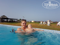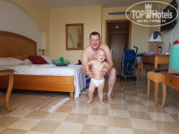 Номера хорошие, без золотых унитазов, конечно (встречали таких преверед в отеле), но в целом все необходимое есть, санузел раздельный, сантехника подуставшая, но всё работает, кровать была из двух, хотя номер значился как DBL, но это мелочи, на ТВ два русских канала, особо вечерами смотреть нечего. Уборка номера на три с плюсом, т.е. свиду как бы и убрано, но можно и пыль найти и волосы уборщиц, мы особо не заморачивались, что видели, сами убирали, оставление чаевых на качество уборки особо не влияет. Полотенца меняли не каждый день, но всегда беленькие и чистенькие висели. Постельное менялось раза два, возможно, я не замечала особо, так же всегда было чистенькое, даже если мы что и запачкали. Система кондиционирования хорошая адекватная, перепадов по воде тоже никаких не наблюдали. Бассейны хорошие, вода чистая на глаз, запах хлора был пару раз, но мы в бассейнах не тусим, поэтому нам всё-равно. Очень порадовал бассейн с морской водой, вот он реально спасал наш отдых, потому что море тут - это просто беда... классный пляж с хорошим песком, шизлонги всегда свободные есть, но море - помойка, я не говорю ни про водоросли, ни про медуз, с которыми познакомилась я и мой сын год и восемь пару раз, я говорю про реальный мусор, который болтается в воде, это и мишура с пиратских кораблей, встречали и бутылки, бумажки, после шторма вообще был атас, в море болтались пакеты размером с полчеловека и причём их было много. Создавалось впечатление, что всё г..но{удалено модератором} с кораблей и окружающих отелей прибивало к нам. Это самый большой и практически единственный минус, который подпортил впечатление об отдыхе, но повторюсь, в отеле есть бассейн с морской водой, который наш отдых отлично спасал.