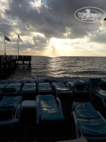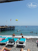 Как я уже сказал - находится он рядом с отелем. Да, он небольшой (по сравнению с пляжами 5-звездочных отелей, находящихся рядом), но он очень уютный (если не считать постоянно долбящую музыку отеля Double Tree by Hilton, за это их просто прибить хотелось). Многие писали, что из-за размеров - часто не хватало шезлонгов. Друзья мои хорошие, открою вам один секрет - нужно просто пораньше приходить на пляж, а не в 9-10 часов! Мы вставали в 6, умывались и приходили туда примерно в 6:40-7:00 и почти весь пляж был пустой. Правда в час-пик, когда в море много людей, мы пользовались пирсом рядом стоящего пятизвездочного отеля (это месть за громкую и долбящую музыку). Никто нас оттуда не выгонял и не прогонял, так как народу на другом пляже, а точнее в море практически не было (не знаю почему) и там можно было спокойно плавать. Теперь расскажу о втором пляже, который многие в отзывах хвалили, но не я. На маленьком пляже есть шезлонги, которые располагаются под тентами, что помогает спастись от жары и перегрева, а также ожогов. На втором пляже тентов просто нет! Жуткое палящее солнце и еще больше людей, даже с учетом того, что его площадь гораздо больше. Чем-то напоминает городской пляж в Лазаревском. Еще одним минусом является мутная вода. На маленьком пляже она всегда прозрачная, а там, из-за большого потока людей, даже дна не видно и часто плавает мусор. + повелись на прикол, что можно доехать на автобусе. Ребята, это просто издевательство)) Мало того, что он опоздал, так мы даже не успели сесть на сидения, как нам уже сказали - Выходите, пляж! Там спокойно можно дойти и пешком, но мы там были всего один раз, а далее наслаждались морем на ближайшем пляже. Если захотите попить - так же есть автоматы с соками и кофе (бесплатно).
