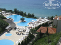 Очень великолепный отель, идеально подойдет для тех людей, кто привык отдыхать по системе все включено. Отель работает по системе ВВ, All и Ultra All. Комплекс отеля состоит из центрального здания (7этажей) и 5-ти трехэтажных корпусов, в одном из корпусов номера ( deluxe suites, deluxe junior ). Номера отличные, просторные и красивые. В номере чайник ( кофе, чай) сейф, халаты, мини-бар пополняется бесплатно ( по системе All и Ultra All). Vi-Fi в лобби бесплатно. 3 ресторана a la carte по системе Ultra All для гостей бесплатно, а по системе All бесплатно 1 раз в неделю. В отеле каждый день новое меню. Хорошая анимация. Проводятся разные шоу, мюзиклы ( проводился мюзикл «Мамамия»), преподаются уроки греческого танца и греческого языка, а так же уроки традициональной греческой кухни. В отеле есть театр и кинотеатр. Вечером туристы могут наслаждаться интересными развлекательными программами, послушать живую музыка, или посетить ночной клуб . Для детей хороший детский клуб. На протяжении дня туристы могут кататься на велосипедах. Очень много привилегий для туристов, проживающих с системой питания Ultra All. Пляж у отеля песчаный, вход есть песчаный и каменистый. Большой плюс отеля в том, что он работает круглый год, хороший сервис, отличное питание, и веселая анимация. А так же хочу отметить, что у отеля есть некоторые минусы: отель расположен на горке к морю спускаться нужно по ступенькам, а так же между отелем и пляжем проходит небольшая дорога. А в основном отель супер
