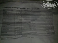 Экскурсии. Одну сделали сами себе – это крокодиловая ферма. Кстати близость этой фермы, так же способствовало выбору отеля. До фермы 10 минут пешком, на такси 1 динар. Пришли заранее к кормежке, кормят в 16-00, но не каждый день вроде, точно кормят в среду и пятницу. Интересная штука, у Анэкса стоит 48, в кассе 20 динар, но тут все понятно, а вот детский билет стоит 8 динар с 4 лет в кассе, и 25 динар с 2-х лет у Анекса. Т.е. навариваются на бесплатном входе на маленьких детях с 2-х до 4-х лет. При входе, после прохождения кпп, есть сувенирные магазинчики и кафе, цены для туристов. За 20 динар дают билет на право посещения трех зон: ферма, деревня и музей. Две последние просмотрели мельком, скучновато там, но отказаться от них нельзя, а деревня даже пугала моментами, заходишь в домик, а там живая женщина сидит, придет, не ожидаешь в этих постройках увидеть живого человека, думаешь кукла, а она раз и движется, аж жутко становится, такое же было на обзорке. А вот ферма понравилась, такие громадины плавают, детей будете поднимать на руки или сажать на шею, держите крепче, есть там конечно, небольшое ограждение из сетки, но не дай Бог туда упасть, особенно в воду, шансов не будет, их там под сотню особей. Не поленитесь и постойте в очереди ради фотки с крокодильчиком, ребенок будет в восторге. Фото бесплатное, очередь двигалась быстро, было сразу 4 крокодильчика. Обратно вернулись в отель на повозке с лошадкой, цена 5 динар. Вторая экскурсия – обзорка. Длилась примерно 4 часа. Сколько зарекался раз, что никогда не буду брать обзорку, так как возят в основном по магазинам, и кораблик, потому что везде одно и тоже. Взяли обзорку у Анекса (фото прайс-листа экскурсий с ценами прилагается), почему у Анекса, а не на улице, во-первых, на улице и не предлагали, единственный раз нам предложил экскурсию на кораблик наш извозчик, который нас вез на лошади с крокодиловой фермы, во-вторых, если экскурсию предлагают на улице, ее предлагают всем, независимо от национальности, значит, скорее всего, гид будет говорить на английском или французском, а языков я не знаю, а в обзорке, то, что говорит гид это неотъемлемая и важная часть экскурсии. Еще раз убедился, на обзорке делать нечего, возят по магазинам, гончарная мастерская и при ней магазин, синагога и при ней магазин, музей и магазин, и цены для туристов. В конце завезли на рынок в столицу острова, и гид ведет к месту, видимо, где имеет долю. Все дорого, не вздумайте там что-то брать, пройдите вглубь. Мыло оливковое 3 динара за кусок (100гр), в 50 метрах магазин фикс прайс (т.е. с фиксированной ценной, скидок не делают, не просите), это же мыло 1.5 динара. Точно такой же магазин есть и через дорогу от отеля, правда из-за близости к отелям, подороже чуть-чуть, там мыло 2 динара стоит. В итоге на рынке ничего не купили, кроме мыла, понравилась кожаная сумка из верблюда, но внутри сделана из материала, из которых делают сумки, в магнитах такие продают по 50 рублей, красочные такие, с фруктами всякими. У меня был такой рюкзак, внутренность со временем распушилась и скаталась. Не забывайте торговаться, цена сумки изначально была какая-то космическая 250 динар, а в конце стала 40. Сумки из верблюда местного производства отличить легко, по запаху, вы его не с чем не перепутаете, и по внутренней отделке, о которой писал выше. Последняя экскурсия, на которой я был, это Татуин-Шени