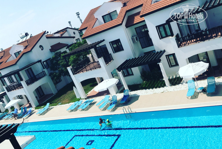 Отдыхала в этом отеле с 23 по 30 июля с мамой и дочкой подростком выбрали этот отель только из за стоимости тура (30000 с человека) нас это устроило,начиталась отзывы ,ну думаю все конечно субъективно,мы не притязательны и не предирчивые люди отдохнем как нибудь ( оговорюсь сразу в Турции не первый раз отдыхали в отелях разной категории), но этот отель пять звёзд вроде как,надеялись что будет все на пять звёзд по факту это тройка. От аэропорта ехали минут 35 весь автобус ехал в этот отель,приехали вечером поэтому заселили быстро,достался номер на 3этаже с видом на бассейн,в номере не работал душ,починили на след.день .номер двухкомнатный ,но мы пытались его поменять но нам сказали свободных номеров нет,денег доплачивать мы не стали и остались в этом номере,поменять хотели по причине ,что нас трое (мама,бабушка и дочка ) а в номере одна двухспальная кровать и диванчик,как то хотелось разные кровати чтобы были,на рецепшене поедложили дать раскладушку вместо дивана,ага сейчас прилетели на отдых спать на раскладушке,немного понервничали но дочка согласилась спать на диванчике,а я как в детстве с мамой ))). Ладно номер это все ерунда мы там только мылись и спали ( да кстати душевая очень маленькая полненьким там будет тесновато,на тростиночек размер))). Огромный минус отеля для меня это все же оказался этот кораблик до пляжа,первые два дня это нас не напрягало,но потом жутко надоел,корабль идёт до пляжа ровно 15 минут-многовато ,пляж грязный ,но это благодаря нашим же туристам,дают детям играть бутылки,стаканчики,дети поиграли они так и валяются,но неужели нельзя подойти собрать все это и тупо кинуть в мусорку (по пляжу стоят горшочки) ну а работникам отеля пройтись с граблями,да лежаки от песка почистить,пляж маленький можно это сделать без проблем,тем более первый кораблик приплывает аш пол восьмого вот это еще один минус,мы привыкли ходить на море рано,а тут ты зависим от кораблика,последний в 19.30 вроде,из за того что море далеко очень душно и жарко на территории отеля,зелень на территории есть но от нее нет и даже тенечка,кстати территории как таковой нет это дорожки между карпусами и бассейнами,пару беседок на газоне у реки,там же два бара,анимация на меня впечатление не произвела,скучные,детская как и везде одни и теже танцы-песни ну дети прыгали значит им было норм) возле отеля ничего нет ближайшие магазинчики в поселке кадрие минут 15 от отеля маршрутка 23 или 21 проезд 1$.ну а теперь по пунктам: 1.заселение -после 14.00 проходит быстро( на рецепшене не очень радушные,хотя всегда обращались к ним с удыбкой). 2. Номера нормальные( полотенца,халаты,тапочки,постельное бельё ,мыльно-рыльные принадлежности все было) ,уборка номера условная,сухой тряпкой сметут песок,заправят кровать,поменяютполотенца ,нам меняли каждый день).3. Территория отеля нас не впечатлила даже пофоткаться особо негде,зелень есть вдоль дорожек,белые коттеджные домики мне нравились( отель это бывший коттеджный посёлок ( кстати некоторые домики являются частными до сих пор) на территории расположены бассейны,две небольшие водные горки работают по часам,бар у бассейна,детский бассейн,детская площадка,есть бассейн у реки,там же еще бар.возле отеля ничего нет. 4. Анимация есть но слабая,на нее ходили так как уже говорила из отеля выйти пройтись некуда,убивали на ней время ну и сами себя ве