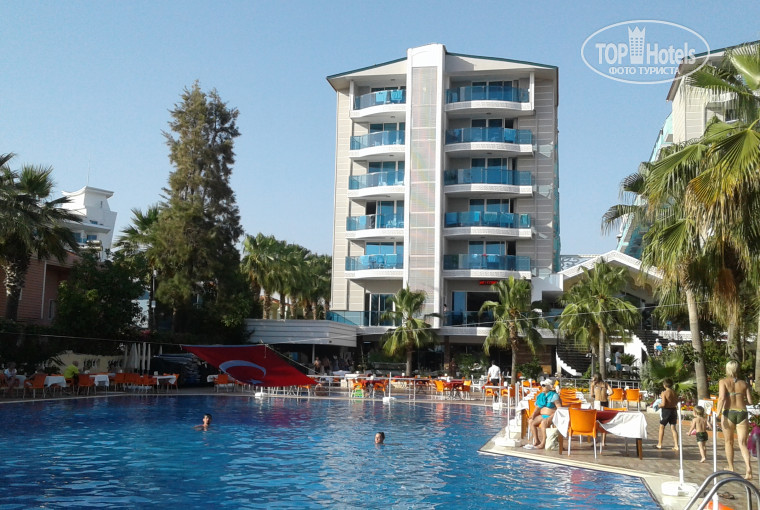 От аэропорта в Анталии до отеля ехали ровно 100 (!) минут. По приезду в отель (8.00 утра) нас встретил Рамси. Много отзывов здесь о нем. Правда очень приветливый, особенно с детьми. Нам сразу одели браслеты и попросили подождать около часа пока приберут номер. Номера расположены так, что солнце светит либо с утра, либо после обеда (кондиционер практически не спасал, т.к. перегревался внешний блок, было +45 в тени). Sea View (хотя бы частично) - практически во всех номерах.