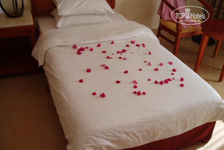 Отель-5: Сам отель просто обворожительный (для Египта) денег не давали, заселили в красивенький номер на первом этаже, оч уютный, 2 выхода: на балкон (во дворик) и к бассейну и ко всей инфраструктуре))) хоть главный бассей и не подогреваемый, но в нём реально находиться, не на столько он холодный! Т.к. моря там далекова-то (по пантону) и обычно с красивыми, но опасныи волнами, поэтому некоторые люди купались в бассейне)))
