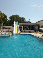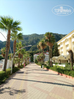 Побывав пять раз в разных местах на Средиземном море в Турции, решил сменить обстановку. Не пожалел совершенно. За стоимость простой пятерки на Анатолийском побережье данный отель даёт возможность познакомиться с Эгейским побережьем Турции. Прибыли в отель группой из тридцати человек. Вручив документы и рекомендательное письмо с данного сайта, получили браслеты и пошли осваивать территорию. Заселили ровно в два часа дня, первыми на третий этаж корпуса рядом с основным. Номер двухкомнатный, две обычные кровати, одна двуспальная и диван. Сантехника, фен, телевизоры, кондиционер и т.д. работали без нареканий. Уборка отличная, пополняли принадлежности, полотенца брошенные на пол меняли. Вайфай в номере работал исправно, на каждом этаже видел по два роутера в коридоре. Несмотря на песок принесенный с пляжа на обуви после уборки было очень чисто. Никаких долларов не оставляли. Персонал опрятный и вежливый. Я забыл на пляже ласты, на следующий день их мне вернул бич бой, дал ему 1$ за это. Пляж состоит из сорока зонтиков и восьмидесяти лежаков. Т.к. мы по очереди ходили в шесть утра смотреть и фотографировать черепах, то всегда имели два лежака на четверых на первой линии. В течении дня свободные лежаки были, основная масса купается после завтрака. Пляж чистый, немного тесноватый. Бара нет, береговая линия полотно усеяна лежаками, так у большинства отелей тут. Море великолепное, больше на озеро похожее. Везде горы, привычной линии горизонта на море нет, волн нет. Вход удобный и пологий, купаться легко и приятно , подойдёт для тех, кто не умеет плавать. В море черепахи, размер около метра в диаметре, спокойные, красивые, едят травку со дна. Был рад, что как обычно взял маску, ласты и фотоаппарат для съёмки под водой. Температура Эгейского моря на 3-4 градуса ниже чем средиземного. Освежает. Около 25 градусов. Климат не такой жаркий и влажный, ночью 24-25 градусов, легко спать. В отеле три бассейна, одна горка. Лежаки новые. Нигде нет толкучки, около бара почти всегда пусто. В ресторане всегда есть свободные места. Не надо ничего занимать, можно зайти на 5-10 минут раньше и вас никто не попросит. Нет очереди перед открытием и красной ленты, как в дешёвых анатолийских пятёрках. Рацион питания стандартный, много сыра овощей. Основной упор на курицу, она в разных видах и вкусно приготовлена. Рыба хорошая. Мясо не каждый день, но есть, изделия из непонятного фарша не в счёт. В июле были арбузы, дыни, сливы, апельсины, яблоки, иногда зеленоватые абрикосы и виноград. Апельсины сладкие, но побитые. Чай только чёрный в больших заварниках. Хороший кофе из машины, иногда к нему небольшая очередь. Выпечка однообразная, иногда есть что-то реально вкусное. Гарниры нормальные, есть картофельное пюре и картошка фри, для наших соотечественников это важно. Очень понравились курники, выложил фото. Анимация хорошая, не навязчивая, есть детская дискотека. Отель находится в городской черте, до пляжа вдоль канала около пятисот метров. Городок Ичмелер чистый, красивый, немного тесноватый. Экскурсии брали у Мишы через дорогу, цена на тереть дешевле пегасовских, ребёнок семи лет ездил бесплатно, ребёнок 14 лет за 50% стоимости. У гида дети бы поехали за 50 и 100%. Ездили на Эгейские острова и в Дальян. Всё прошло без нареканий. Отель я рекомендую тем, кто уже был в традиционных турецких отелях на С