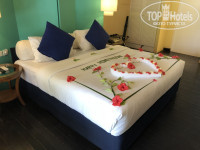 Жили мы в 278 номере, номер просторный, уборка в номере два раза в день. В номере был фумигатор, но комарики все же иногда прилетали, если есть возможность, лучше с собой брать средства от укусов насекомых. Вид из номера был красивый, сначала расстроили волнорезы, но они практически по всему острову. За каждым номером закреплено по два шезлонга (они подписаны), но так как мы были с ребенком, нам принесли еще один.