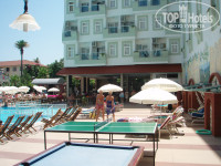 Номер в старом корпусе. Окна и балкон выходили на улицу- шумно, + дверца на балкон не закрывалась. Машины ездят, мечеть не далеко, в 4 часа ночи будит призыв на молитву. На лестницах ковры рваные, грязные. Очень маленький пляж. Ни разу там не полежали, т.к. мало лежаков, всё время занято.