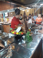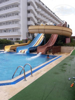 Были в отеле с мужем с 22.07-30.07. Приехали в отель около 19.30,нас сразу отправили поужинать,после сразу заселили в 517 номер на 5 этаже.Номер выходил на соседний отель,небольшой балкон,в номере одна 2-х спальная и 1односпальная кровати. Кондиционер работал хорошо,немного шумновато,но мы внимания не обращали. Мини бар пополнялся каждый день(пиво,фанта,кола,соки с трубочкой,вода) В ванной комнате всё работало исправно,фен правда тоже работал как трактор,но мы им не пользовались. Уборка каждый день,шампунь,мыло,гель для душа пополняли каждый день,правда не было кондиционера для волос,мы свой не брали,поэтому волосы были как солома,но это мелочи. Сейф и интернет платный по 1 евро в день,и в часы пик когда все выходили в интернет,ловило не очень хорошо,а в остальном неплохо. Территория небольшая но очень ухоженная. Море всё время с волнами,есть пирс,пляж мелкая галька,без спец.обуви сложновато.Бассейнов два для взрослых и один детский + один с двумя горками.Анниматоры все очень стараются,деткам было интересно,да и взрослые не отставали. Есть стрельба из пневматики,дартс,бочча,теннис,воллейбол,футбол. Вечерами было шоу силами аннимации отеля,неплохо. Из алкоголя пила только ликёры,нравился кокосовый. Несколько видов коктейлей алкогольных и несколько для детей, не плохие.Еда это рай для гурманов,мясо было и индейка,и курица,и говядина в разных выриациях. Рыба и морепродукты всегда. Всевозможные соусы и салаты,сыры и колбасы,пирожные и фрукты. Мороженное сливочное и шоколадное с 14.00-17.30 вкусное,есть платное мороженое.В кафе подаются пирожные и пекут вафли,тоже вкусно. В общем отель спокойный больше для отдыха с детьми.