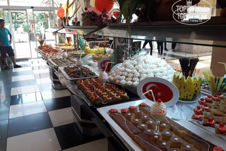 В итоге с грехом пополам 14:30 мы заехали. Номер хороший, чистый. Все работало, кондер, душ, тв. Номер был 1615. С видом на закат морской! Потрясающе! Заметила что парочек заселяют на высокие этажи, а семейные номера находятся ниже. Анимация так себе. С 21:00-22:00 для детей песенки танцы. С 22:00-23:00 конкурсы, фокусы, турецкая ночь по воскресеньям. Дискотек нет! Ни при отеле не на пляже. Хотя за 10 баксов можно поехать на вечеринку в город куда зовет аниматор . В общем если бы не были большой компанией, то по отдельности нам было бы очень скучно. Для молодежи выбирайте другой отель. А так очень чистый ухоженный обновленный отель!