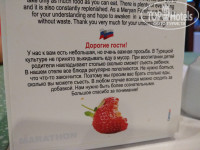 Питание - характерно для Турции, мы не гурманы, нас всё устраивало. Хватало всем. Голодными не ходили! Вечерами даже были роллы и суши, не всегда. Много рыбы, индейки, баранины.